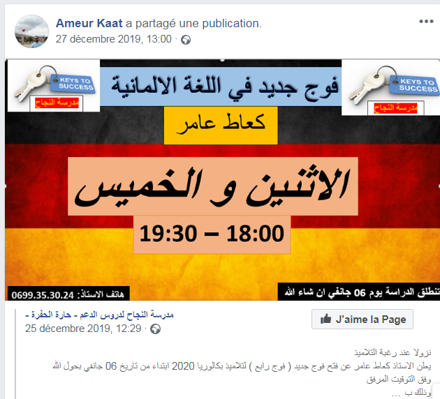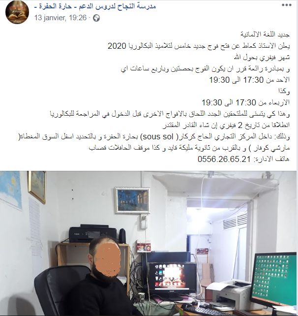 دروسه الخصوصية بمدرسة خاصة الواقعة بحارة الحفرة بسطيف، ضاربا مصلحة تلاميذ