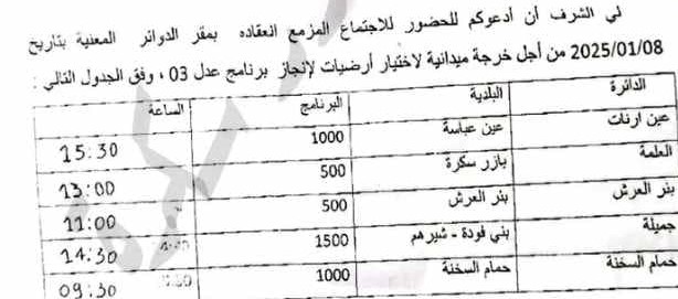 مدير التعمير والهندسة المعمارية والبناء قد اخطر كل من رؤساء دوائر عين ارنات