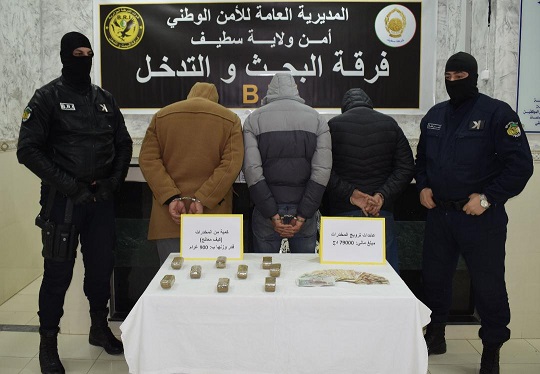 تمكن أفراد فرقة البحث والتدخل B R I بأمن ولاية سطيف، من توقيف 03 أشخاص تتراوح أعمارهم بين 22 و 42 سنة، متورطون في حيازة المخدرات لغرض البيع، مع ضبط 09 صفائح بوزن إجمالي قدره 900 غرام وعائدات مالية إجرامية تفاصيل القضية جاءت إثر استغلال معلومات بخصوص قيام مجموعة إجرامية بترويج المخدرات (كيف معالج) على مستوى حي عين الطريق ببلدية سطيف، حيث تم تكليف فوج ميداني لغرض البحث والتحري عن هوية ومكان نشاط المشتبه فيهم، لتسفر العملية عن توقيف 03 أشخاص متلبسين بحيازة 900 غرام من الكيف المعالج، إضافة إلى مبلغ مالي من العائدات الإجرامية ناهز 8 مليون سنتيم .